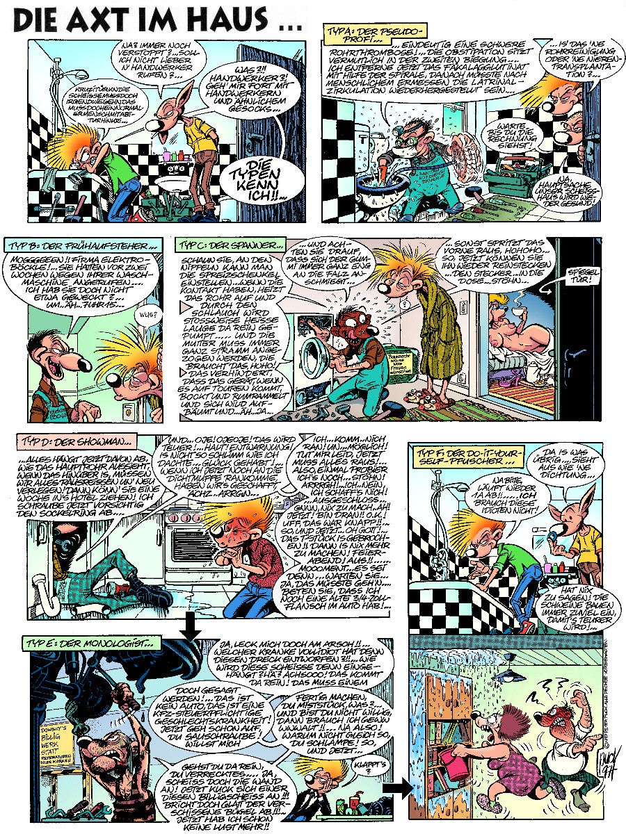 Typ E ist ein Kumpel von mir, der tatsächlich seine Arbeit monologisch kommentiert und dabei Schrauben, Muttern, Bauteile u.ä. beschimpft.